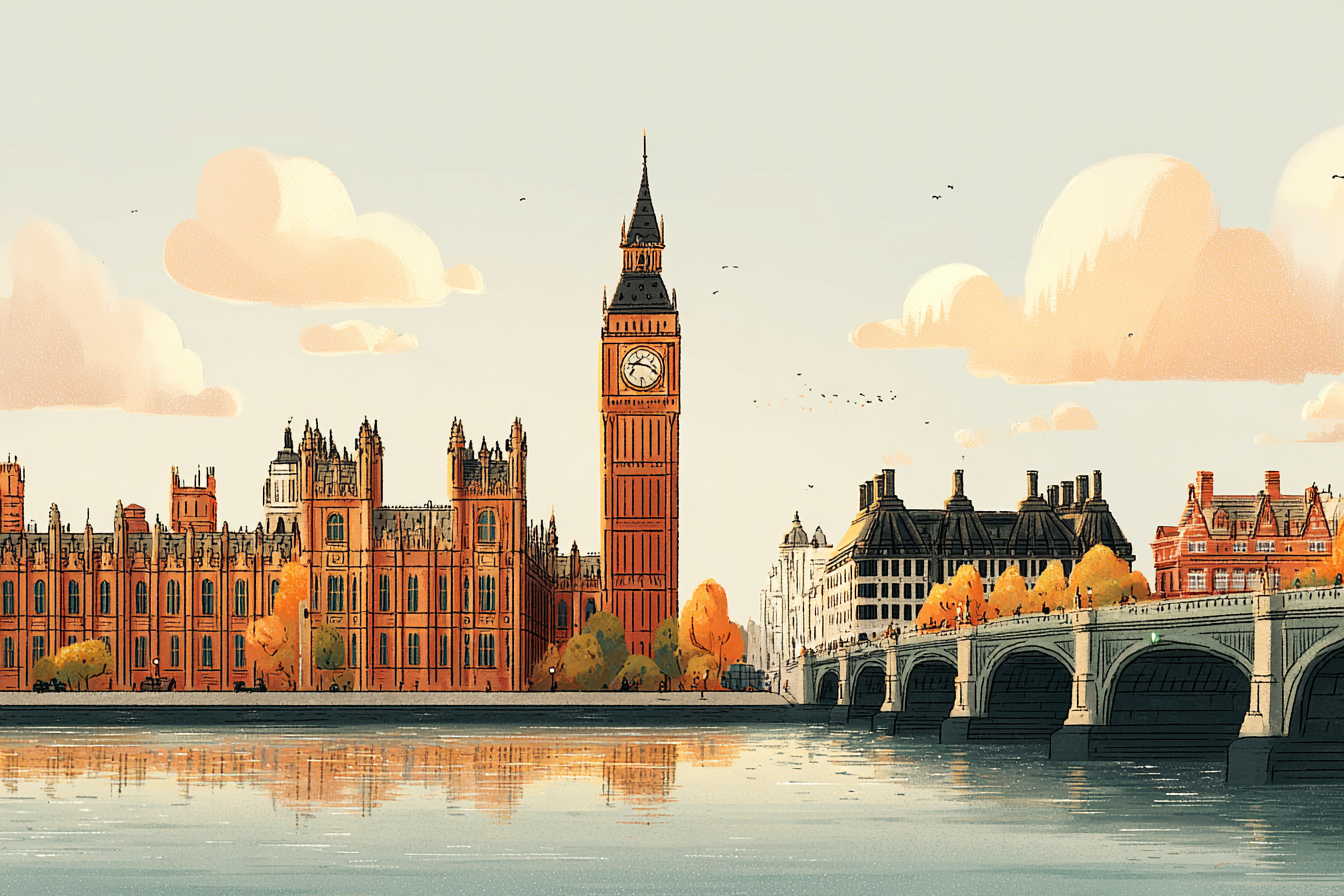 - Palatul Westminster. Este clădirea Parlamentului britanic, care include mai multe turnuri și săli de dezbatere.