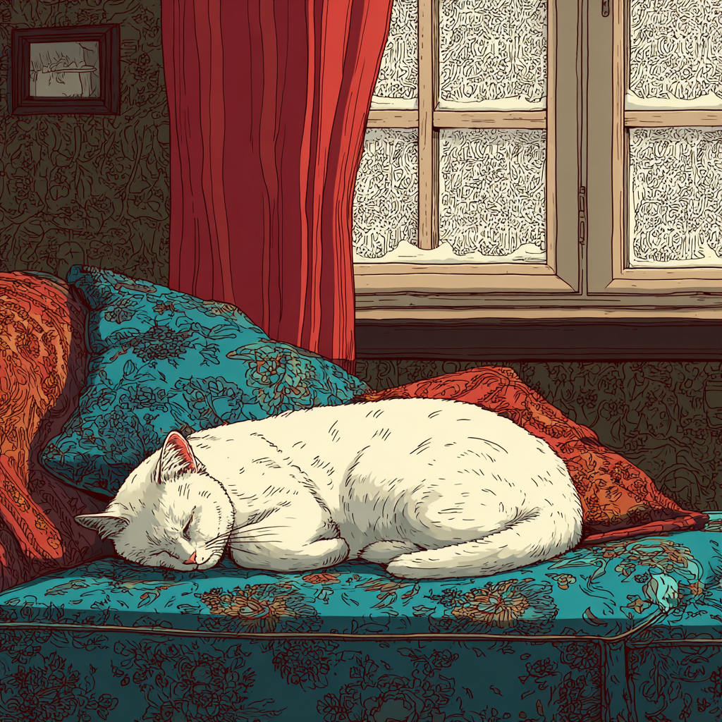 - The cat is sleeping. (Pisica despre care vorbeam doarme.)