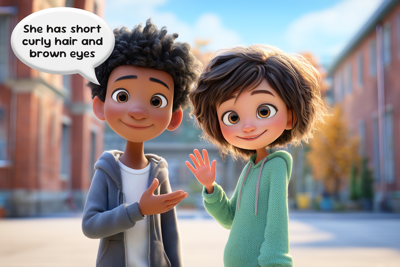 Pentru a descrie o persoană în engleză, copilul are nevoie de structuri de propoziții simple, pe care să le repete și să le completeze cu propriile cuvinte. De exemplu: