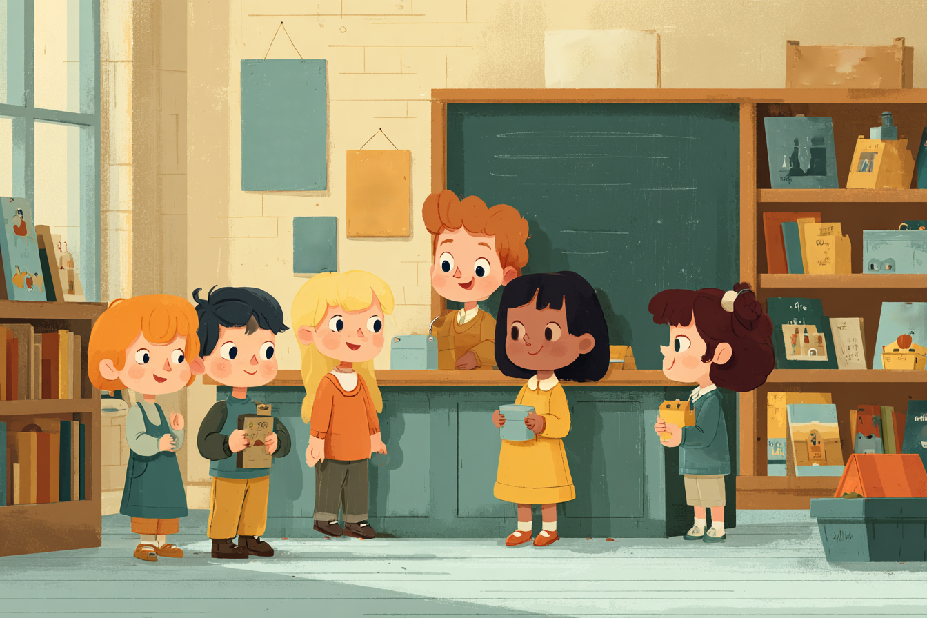 Școala, sau grădinița, este locul unde copilul își formează primele prietenii de durată și interacționează cu persoane din afara casei. Tu îl poți ajuta să se adapteze mai ușor învățându-l câteva expresii în engleză pe care le poate spune la oră sau atunci când se joacă cu prietenii.